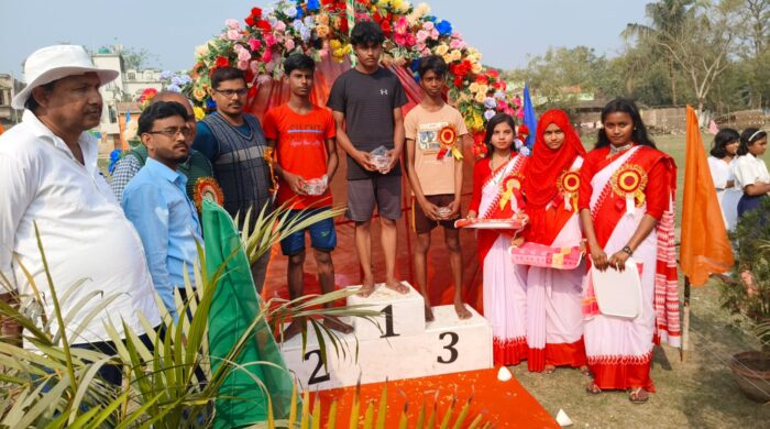 নতুন পয়গাম: বুধবার জলঙ্গী ব্লকের খয়রামারি হাই স্কুলে উৎসাহ ও উদ্দীপনার মধ্য দিয়ে বিদ্যালয়ের ৩০তম বাৎসরিক ক্রীড়া প্রতিযোগিতা সফলভাবে সম্পন্ন হলো। বিদ্যালয় প্রাঙ্গণে দিনভর এই ক্রীড়ানুষ্ঠান ঘিরে ছিল উৎসবের আবহ। বিদ্যালয়ের সভাপতি ওয়াহিদুজ্জামান বিশ্বাস (রেন্টু) এবং ভারপ্রাপ্ত প্রধান শিক্ষক উৎপল মণ্ডলের সার্বিক তত্ত্বাবধানে, ক্রীড়া শিক্ষক মুখলেসুর রহমানের পরিচালনায় এই প্রতিযোগিতার আয়োজন করা হয়। অনুষ্ঠানে উপস্থিত ছিলেন খয়রামারি গ্রাম পঞ্চায়েতের প্রধান মিঠুন বিশ্বাসসহ এলাকার বিশিষ্ট সমাজসেবীরা। বিভিন্ন ক্রীড়া বিভাগে বিদ্যালয়ের ছাত্রছাত্রীরা শৃঙ্খলাবদ্ধভাবে অংশগ্রহণ করে নিজেদের দক্ষতার পরিচয় দেয়। প্রতিযোগিতা শেষে বিভিন্ন বিভাগে প্রথম, দ্বিতীয় ও তৃতীয় স্থানাধিকারী ছাত্রছাত্রীদের হাতে পুরস্কার তুলে দেওয়া হয়। পুরস্কার পেয়ে পড়ুয়াদের মধ্যে ব্যাপক উৎসাহ ও আনন্দ লক্ষ্য করা যায়। ছাত্রছাত্রীদের প্রাণবন্ত অংশগ্রহণ ও বিদ্যালয় কর্তৃপক্ষের সুশৃঙ্খল ব্যবস্থাপনায় গোটা অনুষ্ঠানটি আনন্দঘন পরিবেশে সম্পন্ন হয়। পড়ুয়াদের খেলা উপভোগ করতে স্কুল মাঠে অভিভাবকদের উপস্থিতিও ছিল চোখে পড়ার মতো।