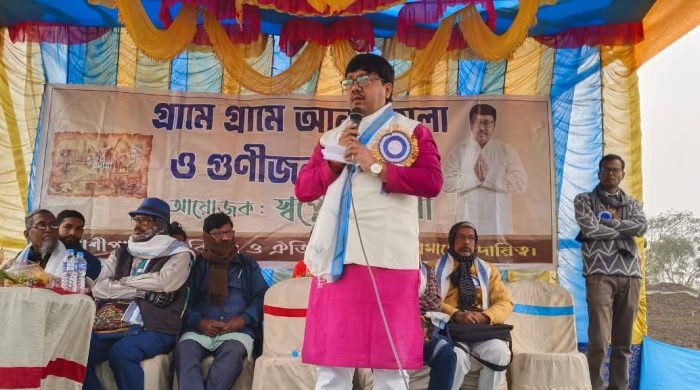 নতুন পয়গাম: গত ২৮ ডিসেম্বর পলাশীপাড়া বিধানসভার ধনঞ্জয়পুর অঞ্চলের ধাপাড়িয়া পূর্বপাড়া ফুটবল ময়দানে প্রতিভার অন্বেষণে ‘স্বপ্নের নদীয়া’র উদ্যোগে অনুষ্ঠিত হল “গ্রামে গ্রামে আনন্দমেলা” ও “গুণীজন সংবর্ধনা” অনুষ্ঠান। উৎসবমুখর পরিবেশে আয়োজিত এই অনুষ্ঠানের শুভ সূচনা করেন ‘স্বপ্নের নদীয়া’র সভাপতি জয়ন্ত সাহা মহাশয়। এদিনের অনুষ্ঠানে উপস্থিত ছিলেন কবি চৈতন্য দাশ, শিল্পী দেবাশীষ মিত্র, শিক্ষক শরিফুদ্দিন শেখ, প্রাক্তন সেনাকর্মী আবু তাহের বিশ্বাস, বজলুর রহমান শেখ, কবি ও সম্পাদক দীনমহাম্মদ শেখ, মহঃ জহিরুদ্দিন শেখ সহ আরও অনেক গুণী ব্যক্তিত্ব। পাশাপাশি উপস্থিত ছিলেন ‘স্বপ্নের নদীয়া’র তেহট্ট-২ ব্লকের সভাপতি আব্দুল জুব্বার মল্লিক এবং জেলার সাধারণ সম্পাদক বাবুল শেখ।