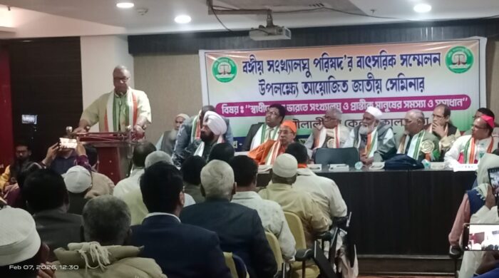 নতুন পয়গাম, কলকাতা: বঙ্গীয় সংখ্যালঘু পরিষদের উদ্যোগে সোমবার মৌলালি যুব কেন্দ্রে সংগঠনের বার্ষিক সম্মেলন উপলক্ষে এক গুরুত্বপূর্ণ সেমিনার অনুষ্ঠিত হয়। সেমিনারের বিষয় ছিল— “স্বাধীনোত্তর ভারতে সংখ্যালঘু ও প্রান্তিক জনগোষ্ঠীর আর্থ-সামাজিক অবস্থার বিশ্লেষণ”। অনুষ্ঠানের সূচনায় কুরান, বাইবেল, গীতা ও গুরুগ্রন্থ সাহিব পাঠের মাধ্যমে সর্বধর্মের প্রতিনিধিরা অংশগ্রহণ করেন। এরপর অতিথি বরণ ও দেশাত্মবোধক সঙ্গীত পরিবেশনের মধ্য দিয়ে সভার আনুষ্ঠানিক সূচনা হয়। সভাপতি হিসেবে আসন গ্রহণ করেন মাওলানা মোজাফফর হোসেন। মঞ্চ পরিচালনা করেন এ কে এম গোলাম মর্তুজা এবং সংগঠনের কার্যকরী সভাপতি শিক্ষক আব্দুর রউফকে সভা সঞ্চালনার দায়িত্ব দেওয়া হয়। স্বাগত ভাষণ দেন সাধারণ সম্পাদক অধ্যাপক জাহান আলী পুরকাইত।