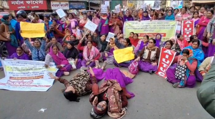 সিউড়িতে বাসস্ট্যান্ড অবরোধ করে বিক্ষোভ আশাকর্মীদের
