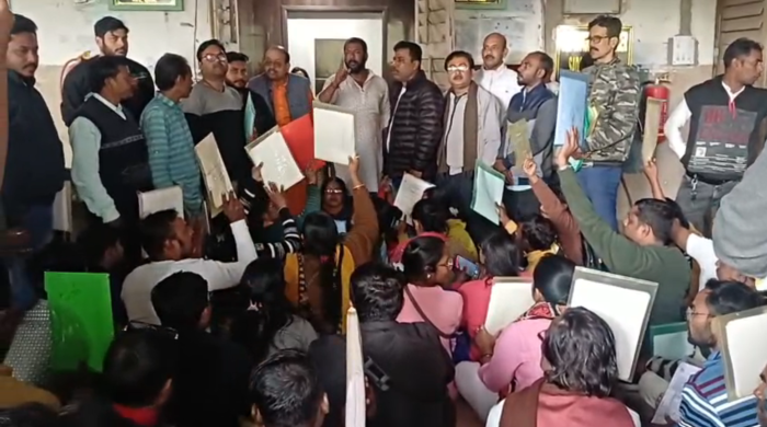নতুন পয়গাম, আব্দুল গফফার, হুগলি: ভোটার তালিকা থেকে নাম বাদ দেওয়ার জন্য নির্দিষ্ট ফর্ম-৭ জমা নিতে অস্বীকার করছেন সদর হুগলির মহকুমাশাসক তথা অতিরিক্ত নির্বাচনী নিবন্ধন আধিকারিক। এই অভিযোগে মহকুমা শাসকের দপ্তরে বিক্ষোভ দেখাল বিজেপি। আজ সদর মহকুমা শাসকের কার্যালয়ের বাইরে বসে দীর্ঘক্ষণ অবস্থান করেন বিজেপি কর্মিরা। এদিন বিজেপির একটা প্রতিনিধিদল সদর মহকুমা শাসক অয়ন নাথের সঙ্গে দেখা করে তাঁরা একটি স্মারকলিপি জমা দেন। এক সাক্ষাৎকারে বিজেপি’র রাজ্য সম্পাদক দীপাঞ্জন গুহ বলেন, বিভিন্ন জায়গা থেকে বিএলএ-২ রা ফর্ম-৭ জমা দিতে আসেন। কিন্তু অতিরিক্ত নির্বাচনী নিবন্ধন আধিকারিক সেটি নিচ্ছেননা। এইআরও’র অধিকারের মধ্যে পড়ে ফর্ম-৭ জমা নেওয়া। কিন্তু কারোর অঙ্গুলিহেলনে সেটি নিতে অস্বীকার করছেন। তাই সাধারণ মানুষের হয়ে আমরা এখানে এসেছি। আমরা এই নিয়ে নির্বাচন কমিশনের কাছে অভিযোগ জানাব। এদিকে এই প্রসঙ্গে তৃণমূল নেতা দেবাশিস মুখার্জি বলেন, বিজেপি আন্দোলনের নামে মানুষকে হেনস্তা করার চেষ্টা করছে। এসআইআরের জন্য এখানে বহু বয়স্ক মানুষ এসেছেন। তাদের সমস্যা থাকতে পারে। এতে তৃণমূলের কোনো যোগ নেই। এটা সম্পূর্ণ নির্বাচন কমিশনের অন্তর্ভুক্ত। তথ্য যাচাই করার সমস্ত কাজই নির্বাচন কমিশনের সাথে যুক্ত যাঁরা তারা করেছেন।