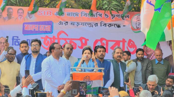 গোলাম আহম্মেদ চিশতী, মালদা, ২৯ জানুয়ারি: আসন্ন বিধানসভা নির্বাচনকে সামনে রেখে রাজনৈতিক উত্তাপ বাড়াতে বৃহস্পতিবার মালদা শহরের রাস্তায় নামলেন ভাই-বোন, কংগ্রেস নেতা ইশা খান চৌধুরী ও প্রাক্তন সাংসদ মৌসম বেনজির নুর। মিছিল ও সভার মধ্য দিয়ে দীর্ঘদিন পর শহরের রাজনীতিতে তাঁদের সক্রিয় ভূমিকায় কার্যত চমকে গিয়েছেন সাধারণ মানুষ। পূর্বনির্ধারিত কর্মসূচি অনুযায়ী এদিন দুপুরে মালদা শহরের বৃন্দাবনি ময়দান সংলগ্ন গান্ধি মূর্তির পাদদেশে কংগ্রেসের সভা অনুষ্ঠিত হয়। সভায় বক্তব্য রাখেন জেলা কংগ্রেস সভাপতি ইশা খান চৌধুরী ও মৌসম নুর। সভা শেষে কংগ্রেস নেতা-কর্মীরা একটি বিশাল মিছিল নিয়ে জেলা প্রশাসনিক ভবনের উদ্দেশে রওনা দেন। মিছিলে কয়েক হাজার মানুষের অংশগ্রহণ লক্ষ্য করা যায়।