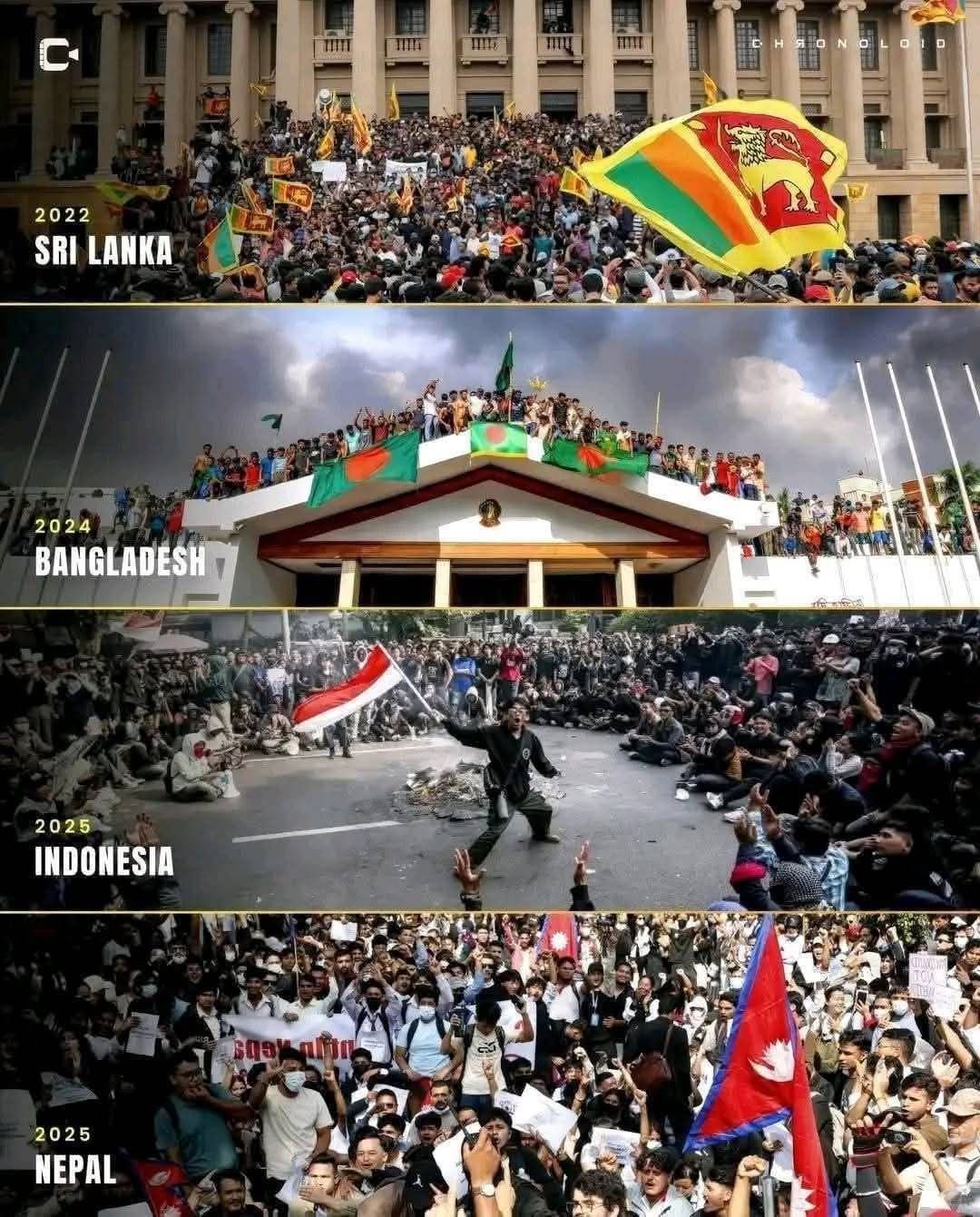 দক্ষিণ এশিয়ার দেশে দেশে শুরু হয়েছে গণঅভ্যুত্থান। স্বৈরাচারী সরকারের অকস্মাৎ পতন। বস্তুত কোন রাষ্ট্রে বিপ্লব হঠাৎ সংঘটিত হয় না। মানুষ স্বতঃস্ফূর্তভাবে স্বৈরাচারের বিরুদ্ধে রাস্তায় নামে না। মানুষ যখন দেখে, সশস্ত্র প্রতিরোধ ছাড়া স্বৈরশাসন থেকে মুক্তি সম্ভব নয়; তখন তারা জীবনের পরোয়া না করে রাজপথে নামে। শ্রীলঙ্কা, বাংলাদেশ ও নেপালের ক্ষেত্রে একথা একশো শতাংশ সত্য। দীর্ঘ স্বৈরশাসনের বিরুদ্ধে ২০১১ সালে আরব বিশ্বে এ ধরনের গণঅভ্যুত্থান শুরু হয়েছিল, যাকে বলা হয় Arab Spring বা ‘আরব বসন্ত’। তবে সেই অভ্যুত্থান সফল হয়নি। কারণ, সেখানে স্বৈরাচারী শাসকদের পৃষ্ঠপোষক আমেরিকা ও ইউরোপ নির্লজ্জভাবে তাদের পাপেটদের রক্ষা করতে এগিয়ে আসে। তারা স্বৈরশাসকদের পক্ষাবলম্বন করে। কট্টর স্বৈরশাসকরা ভয়ানক সহিংসতা ও শক্তি প্রয়োগ করে ‘আরব বসন্ত’ দমন করে।