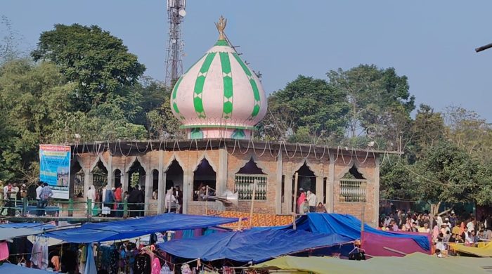 নতুন পয়গাম, প্রীতিময় সরখেল, ধূপগুড়ি: পুরনো বছরকে বিদায় জানিয়ে নতুন বছরকে স্বাগত জানাতে সোনাখালি জঙ্গলে ঘেরা হজরত সোনাখালী দরবেশ বাবার দরগায় ভিড় জমালেন ডুয়ার্সবাসী। ৩২তম প্রয়াণ দিবস উপলক্ষে আয়োজিত ওরস উৎসবকে কেন্দ্র করে প্রার্থনায় মুখর হয়ে ওঠে গোটা সোনাখালি এলাকা। নতুন বছর যেন সবার জীবনে শান্তি, সুখ ও সমৃদ্ধি বয়ে আনে এই কামনাতেই দরগায় প্রার্থনায় অংশ নেন বিভিন্ন ধর্মের মানুষ। জাতি-ধর্ম নির্বিশেষে মানুষের মিলনমেলায় পরিণত হয় সোনাখালির এই ঐতিহ্যবাহী দরগা। এক পাশে ঘন সোনাখালি জঙ্গল, অন্য পাশে বয়ে চলেছে আমরা ভাসা নদী এই দুইয়ের মাঝে অবস্থিত হজরত সোনাখালী দরবেশ বাবার দরগা দীর্ঘদিন ধরেই সম্প্রীতির প্রতীক হিসেবে পরিচিত। প্রতিবছর এই বিশেষ দিনে নতুন বছরকে স্বাগত জানাতে লক্ষ লক্ষ মানুষ এখানে উপস্থিত হন।