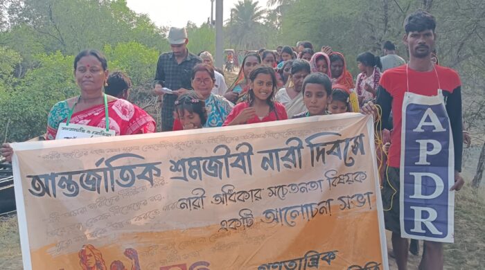 নতুন পয়গাম, হাসান লস্কর, দক্ষিণ ২৪ পরগনা: সুন্দরবন সংলগ্ন জঙ্গলনির্ভর মৎস্যজীবীদের আর্থসামাজিক সুরক্ষার দাবিতে সরব হল মানবাধিকার সংগঠন এপিডিআর। আন্তর্জাতিক নারী দিবসের প্রাক্কালে কুলতলির দেউলবাড়ি দেবীপুর গ্রাম পঞ্চায়েত এলাকায় কয়েক শত মৎস্যজীবীকে নিয়ে সমাবেশ ও পদযাত্রার আয়োজন করা হয়।