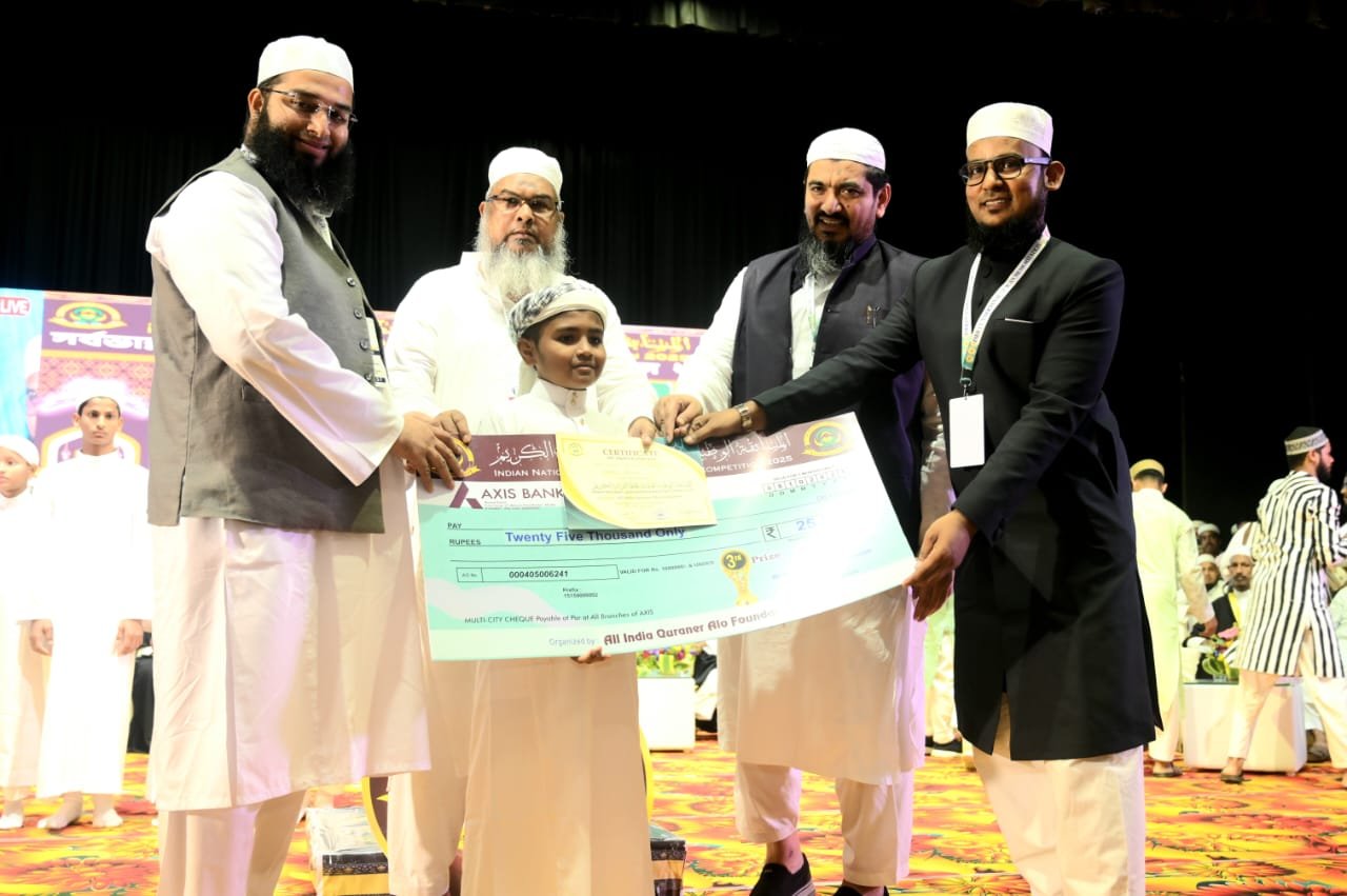 সর্বভারতীয় কুরআনের আলো ফাউন্ডেশনের উদ্যোগে চতুর্থ বার্ষিক জাতীয় হিফজুল কুরআন প্রতিযোগিতার গ্র্যান্ড ফাইনাল অনুষ্ঠিত হল। বুধবার হাওড়া শরৎ সদনে আয়োজিত এই মহতী প্রোগ্রামে বিভিন্ন রাজ্য থেকে বাছাইকৃত সেরা ১১ জন হাফেজ এতে অংশগ্রহণ করে। খুদে প্রতিযোগীদের সুমধুর কণ্ঠে কুরআন তিলাওয়াত এদিনের কর্মসূচিকে অনন্য আধ্যাত্মিক ছোঁয়া দেয়। প্রথম স্থান অধিকার করে আসামের নাজিম উদ্দিন, দ্বিতীয় উত্তর প্রদেশের মুহাম্মাদ আলী এবং তৃতীয় হয় পশ্চিমবঙ্গের ভাঙড়ের ইসমাইল সাপুই।