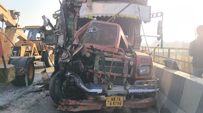 দুটি লরির মুখোমুখি সংঘর্ষ! গুরুতর আহত ২ চালক