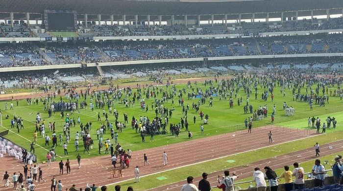 একটাই কারণ, এলএম১০-কে একটিবার চোখে দেখা। কিন্তু ভিআইপিদের ভিড়ে মেসিকে সেভাবে দেখতে পেলেন না ভক্তরা! তাই রাগে-ক্ষোভে-দুঃখে মাঠে বোতল ছুঁড়লেন,চেয়ার ভাঙলেন,গোলপোস্টের জাল ছিড়লেন,এমনকি ফুলের টবও নিয়ে চলে আসলেন কেউ কেউ।