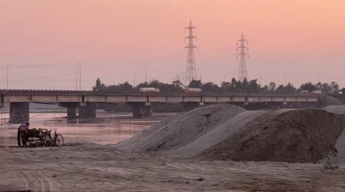 নতুন পয়গাম, প্রীতিময় সরখেল, ধূপগুড়ি: নদীঘাট দখল করে অবৈধভাবে বালি পাথরের ব্যবসা চলার অভিযোগকে ঘিরে তীব্র চাঞ্চল্য ছড়িয়েছে ধূপগুড়িতে। ধূপগুড়ি জলঢাকা নদীর বিসর্জন ঘাটে বেআইনিভাবে বালি মজুদ করার ফলে ক্ষতিগ্রস্ত হচ্ছে নদীর বাঁধ, বিসর্জন ঘাট ও নদী সংলগ্ন এলাকার জমির মাটি। ইতিমধ্যেই নদীর পাড়ের একাংশ বসে গিয়েছে বলে অভিযোগ করেছেন স্থানীয়রা। অভিযোগ, জলঢাকা নদী থেকে বালি তুলে তা নিয়ে এসে মাগুরমারী ২ নম্বর গ্রাম পঞ্চায়েত এলাকার জলঢাকা নদীর দশমীর বিসর্জন ঘাটে মজুদ করা হচ্ছে। যার কারনে ভবিষ্যতে বড়সড় ক্ষতের মুখে পড়তে পারেন এলাকার মানুষ । বালি মাফিয়া ও এক শ্রেণির অসাধু ব্যবসায়ী সরকারি নিয়মকে কার্যত বুড়ো আঙুল দেখিয়ে রাতভর নদীর ঘাটে বালি জমা করছে। ট্রাক ও ডাম্পারে করে গ্রামের রাস্তা দিয়ে অতিরিক্ত বালি বোঝাই করে তা বেআইনিভাবে বিসর্জন ঘাটে ফেলা হচ্ছে।