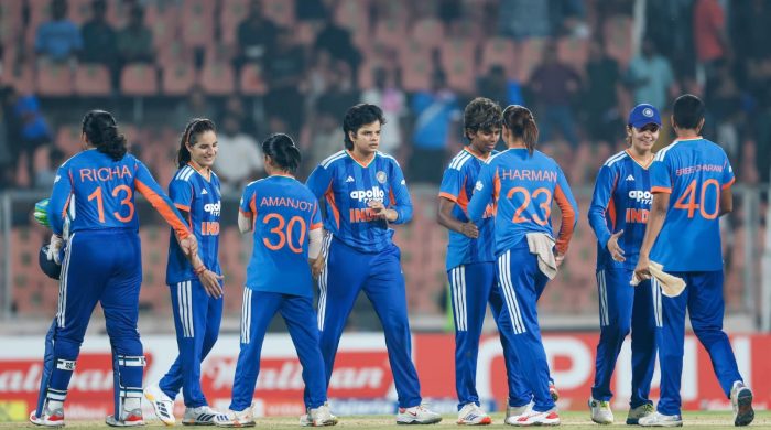 সঙ্গী ওপেনার শেফালিও যথারীতি ঝড় তুললেন। চলতি সিরিজে এটা তাঁর তৃতীয় অর্ধশতরান। এদিন ৪৬ বলে করলেন ৭৯। মারলেন এক ডজন বাউন্ডারি ও একটি ছক্কা। ওপেনিং জুটিতে দু’জনে তোলেন রেকর্ড ১৬২। এই ফরম্যাটে যে কোনও উইকেটে যা ভারতীয় রেকর্ড। এই নিয়ে চতুর্থবার স্মৃতি-শেফালির জুটিতে উঠল একশোর উপর রান। ২০১৯ সালে গ্রস আইলেটে ওয়েস্ট ইন্ডিজের বিরুদ্ধে তাঁরা তুলেছিলেন ১৪৩। এদিন সেটাকেই ছাপিয়ে গেলেন। একসময় দু’জনের মধ্যে কে প্রথমে সেঞ্চুরি করবেন, সেই লড়াই চলছিল। কিন্তু আশা জাগিয়েও পর পর ফেরেন শেফালি-স্মৃতি। এরপর অবিচ্ছিন্ন তৃতীয় উইকেটে ২৩ বলে ৫৩ রান যোগ করেন হরমনপ্রীত ও রিচা ঘোষ। তুলনায় বেশি আক্রমণাত্মক ছিলেন বঙ্গকন্যা। মাত্র ১৬ বল খেলে রিচা অপরাজিত থাকেন ৪০ রানে। আড়াইশো স্ট্রাইকরেটে মারলেন চারটি চার ও তিনটি ছক্কা। ক্যাপ্টেন হরমনপ্রীত ১০ বলে ১৬ রানে অপরাজিত থাকেন। ২২২ রানের লক্ষ্য তাড়া করতে নেমে শুরুটা খারাপ করেনি শ্রীলঙ্কা। কিন্তু হাসিনি পেরেরা (২০ বলে ৩৩) ফেরার পর চাপে পড়ে যায় তারা। ক্যাপ্টেন চামারি আটাপাত্তু (৩৭ বলে ৫২) মারতে গিয়ে আউট হতেই শ্রীলঙ্কার জয়ের সম্ভাবনা শেষ। আস্কিং রেট ক্রমশ তাদের নাগালের বাইরে চলে যায়। ভারতের হয়ে দু’টি করে উইকেট নেন অরুন্ধতী রেড্ডি, বৈষ্ণবী শর্মা। একটি শিকার শ্রী চরণীর। যাইহোক, নিয়মরক্ষার ম্যাচেও ভারত যা খেলছে,তাতে হোয়াইটওয়াশ হওয়া শ্রীলঙ্কার কপালে নাচছে।