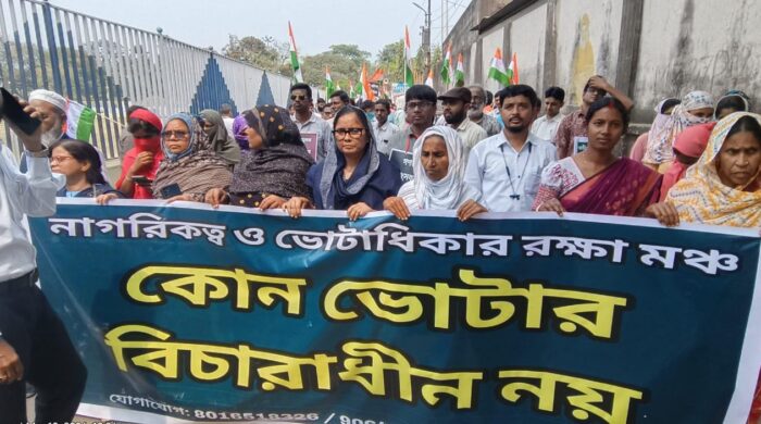 উমার ফারুক, নতুন পয়গাম, মালদা: গোটা রাজ্যের সঙ্গে মালদহের বাদ পড়া ও বিচারাধীন বৈধ ভোটাররা ক্ষোভে ফুঁসছেন। নিজেদের নাগরিক ও গণতান্ত্রিক অধিকার রক্ষায় রাজ্য জুড়েই সংগঠিত হচ্ছেন বৈধ ভোটাররা। ভোটাধিকার কেড়ে নেওয়ার ফ্যাসিস্ট চক্রান্তের বিরুদ্ধে অরাজনৈতিক নাগরিক মঞ্চ তৈরি করে আন্দোলন শুরু হয়েছে রাজ্যের বিভিন্ন প্রান্তে। কলকাতার পার্ক সার্কাস ময়দানে অবস্থান বিক্ষোভ করছেন অধ্যাপক, শিক্ষক,পড়ুয়া ও বুদ্ধিজীবীগণ। সারা বাংলা বিচারাধীন ভোটার মঞ্চ নির্বাচন কমিশনের কাছে ইতিমধ্যেই ডেপুটেশন প্রদান করেছে। রাজ্যের সমস্ত জেলায় এই মঞ্চ কাজ শুরু করেছে। পাশাপাশি বিভিন্ন অরাজনৈতিক ও সামাজিক সংগঠন সম্মিলিত ভাবে পশ্চিমবঙ্গ ভোটাধিকার সুরক্ষা মঞ্চ গঠন হয়েছে। তাদের পক্ষেও কমিশনের কাছে ডেপুটেশন দেওয়া হয়েছে। বৈধ কাগজপত্র থাকা সত্ত্বেও সাধারণ মানুষের ভোটাধিকার কেড়ে নেওয়ার চক্রান্তের বিরুদ্ধে সংগঠিত হচ্ছে নাগরিক সমাজ।