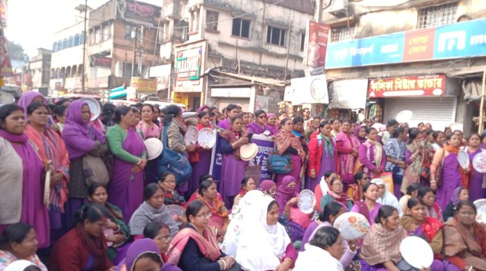 নতুন পয়গাম, অতসী মন্ডল, হাওড়া: বর্তমান সময়ে আশা কর্মীদের কর্মপরিস্থিতি চরম অনিশ্চয়তা ও অবহেলার আবর্তে পড়েছে। কাজ বন্ধ করার উপায় নেই, অথচ নিরলস পরিশ্রমের পরেও প্রাপ্য ভাতা ও ইনসেন্টিভ থেকে বঞ্চিত হতে হচ্ছে—এমনই অভিযোগ তুলে ২৩ ডিসেম্বর থেকে লাগাতার কর্মবিরতির পথে হাঁটেন পশ্চিমবঙ্গ আশা কর্মী ইউনিয়ন (এআইইউটিইউসি অনুমোদিত)। দাবি আদায় না হওয়া পর্যন্ত ধাপে ধাপে আন্দোলন তীব্র করার কর্মসূচির অংশ হিসেবে ৩১ ডিসেম্বর হাওড়া গ্রামীণ জেলার প্রতিটি মহকুমা অফিসে বিক্ষোভ ও ডেপুটেশনের ডাক দেওয়া হয়। সেই কর্মসূচি অনুযায়ী এদিন উলুবেড়িয়া স্টেশনে আশা কর্মীরা জমায়েত হন। সেখান থেকে একটি সুসংগঠিত ও সুশৃঙ্খল বিক্ষোভ মিছিল মহকুমা শাসকের দপ্তরের উদ্দেশে রওনা হয়।