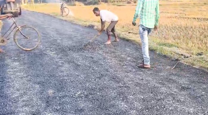 নিম্নমানের রাস্তার কাজে বিক্ষোভ, কাজ বন্ধ করে দিল গ্রামবাসী