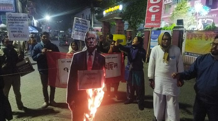 এদিনের বিক্ষোভ কর্মসূচির নেতৃত্ব দেন এস ইউ সি আই দলের রাজ্য সম্পাদকমণ্ডলীর সদস্য ও প্রাক্তন বিধায়ক তরুণকান্তি নস্কর, রাজ্য কমিটির সদস্য ও প্রাক্তন বিধায়ক জয়কৃষ্ণ হালদার, জেলা সম্পাদক নিরঞ্জন নস্কর-সহ অন্যান্য নেতৃবৃন্দ। সভায় বক্তারা ভেনেজুয়েলার উপর মার্কিন সাম্রাজ্যবাদী আগ্রাসনের তীব্র নিন্দা করেন। পাশাপাশি এই বিষয়ে কেন্দ্রের বিজেপি সরকারের নীরব ভূমিকারও সমালোচনা করা হয়। তাঁদের বক্তব্য, আন্তর্জাতিক ক্ষেত্রে এই ধরনের হস্তক্ষেপ বিশ্বশান্তির পক্ষে বিপজ্জনক। সভা শেষে প্রতিবাদ জানিয়ে মার্কিন প্রেসিডেন্ট ডোনাল্ড ট্রাম্পের কুশপুতুলে অগ্নিসংযোগ করেন তরুণকান্তি নস্কর। এই কর্মসূচিকে ঘিরে এলাকায় কিছু সময়ের জন্য রাজনৈতিক উত্তেজনা ছড়ালেও পরিস্থিতি ছিল নিয়ন্ত্রণে।