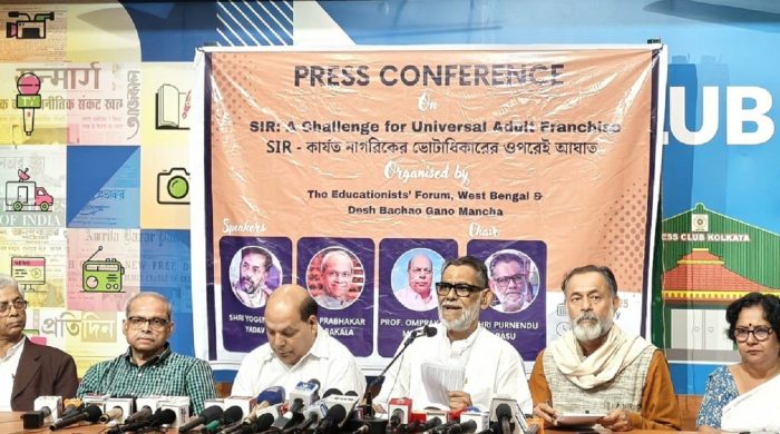 বিশিষ্ট রাজনৈতিক বিশ্লেষক যোগেন্দ্র যাদব বলেন, এসআইআর ভোটার তালিকার নিবিড় সংশোধন প্রক্রিয়া নয়। এটি আসলে মানুষের ভোটাধিকার কেড়ে নেওয়ার ছক। তাই এ রাজ্যের সাধারণ মানুষ এবং বিএলওদেরকে সতর্ক থাকতে বলে যোগেন্দ্রর মন্তব্য, মনে রাখতে হবে বিএলওরা সংবিধানের জন্য কাজ করছেন।