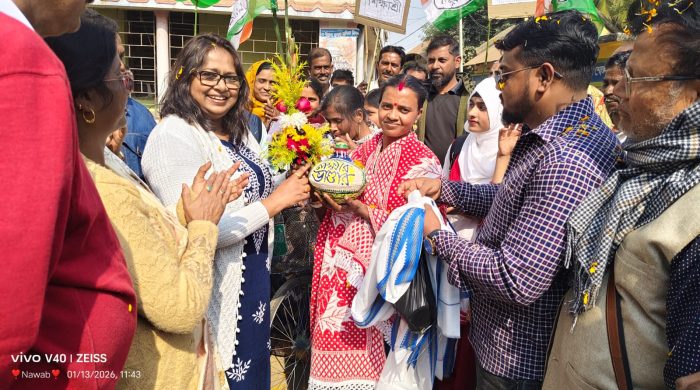 মোহাম্মদ সানাউল্লা, নলহাটি: উন্নয়নের সংলাপে আস্থা রেখে নগোরা গ্রামে বিভিন্ন রাজনৈতিক দল ছেড়ে তৃণমূল কংগ্রেসে যোগ দিল দশটি পরিবার। নলহাটি দু’নম্বর ব্লক তৃণমূল কংগ্রেসের উদ্যোগে আয়োজিত এই কর্মসূচিতে রাজ্যের উন্নয়ন ও জনমুখী প্রকল্পে বিশ্বাস প্রকাশ করেন তাঁরা। এদিন মুস্তাফাডাঙ্গাপাড়া, নগোরা ও বানেশ্বর গ্রামে স্ট্রিট কর্নার সভার মাধ্যমে সরকারের সামাজিক সুরক্ষা ও উন্নয়নমূলক কর্মকাণ্ড তুলে ধরা হয়। পাশাপাশি মুস্তাফাডাঙ্গাপাড়া মাদ্রাসা পরিদর্শন করে ছাত্রছাত্রী ও শিক্ষকদের সঙ্গে মতবিনিময় করেন তৃণমূল নেতৃত্ব। কর্মসূচিতে উপস্থিত ছিলেন হাঁসন বিধানসভার বিধায়ক অশোক কুমার চট্টোপাধ্যায়, জেলা তৃণমূল সভানেত্রী সাহারা মণ্ডল-সহ ব্লক ও অঞ্চলের একাধিক নেতা। নেতৃত্বদের বক্তব্য, মানুষের পাশে থেকে উন্নয়নের ধারাকে এগিয়ে নেওয়াই তৃণমূল কংগ্রেসের অঙ্গীকার— আর সেই উন্নয়নের ফলেই বাড়ছে মানুষের আস্থা।