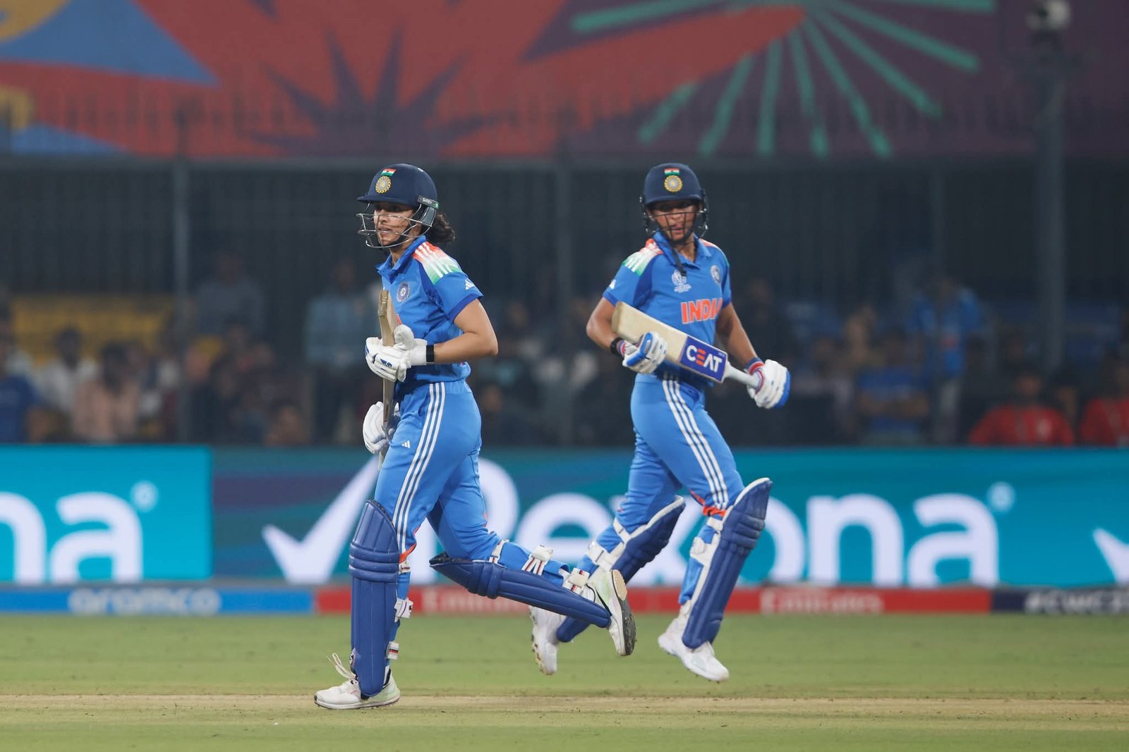 ম্যাচ জিততে হলে ইতিহাস তৈরি করার দায়িত্ব ছিল স্মৃতিদের উপর। কারণ, বিশ্বকাপে কখনও এত রান তাড়া করে জেতেনি ভারত। সেই লক্ষ্যে নেমে শুরুতেই ধাক্কা। বিশ্বকাপে ভালো ফর্মে থাকা প্রতীকা রাওয়াল ৬ রানে আউট হন। রান পাননি হরলিন দেওলও। বরং ভারতকে টানেন দুই অভিজ্ঞ ক্রিকেটার হরমনপ্রীত কউর ও স্মৃতি মন্ধানা। বিশ্বকাপে হরমনপ্রীতের ব্যাটে রানের দেখা ছিল না। কিন্তু গুরুত্বপূর্ণ সময়ে জ্বলে উঠলেন ভারতের অধিনায়ক। ৭০ বলে ৭০ রান করে আউট হন হরমনপ্রীত। হাফসেঞ্চুরি করেন দীপ্তি শর্মাও।