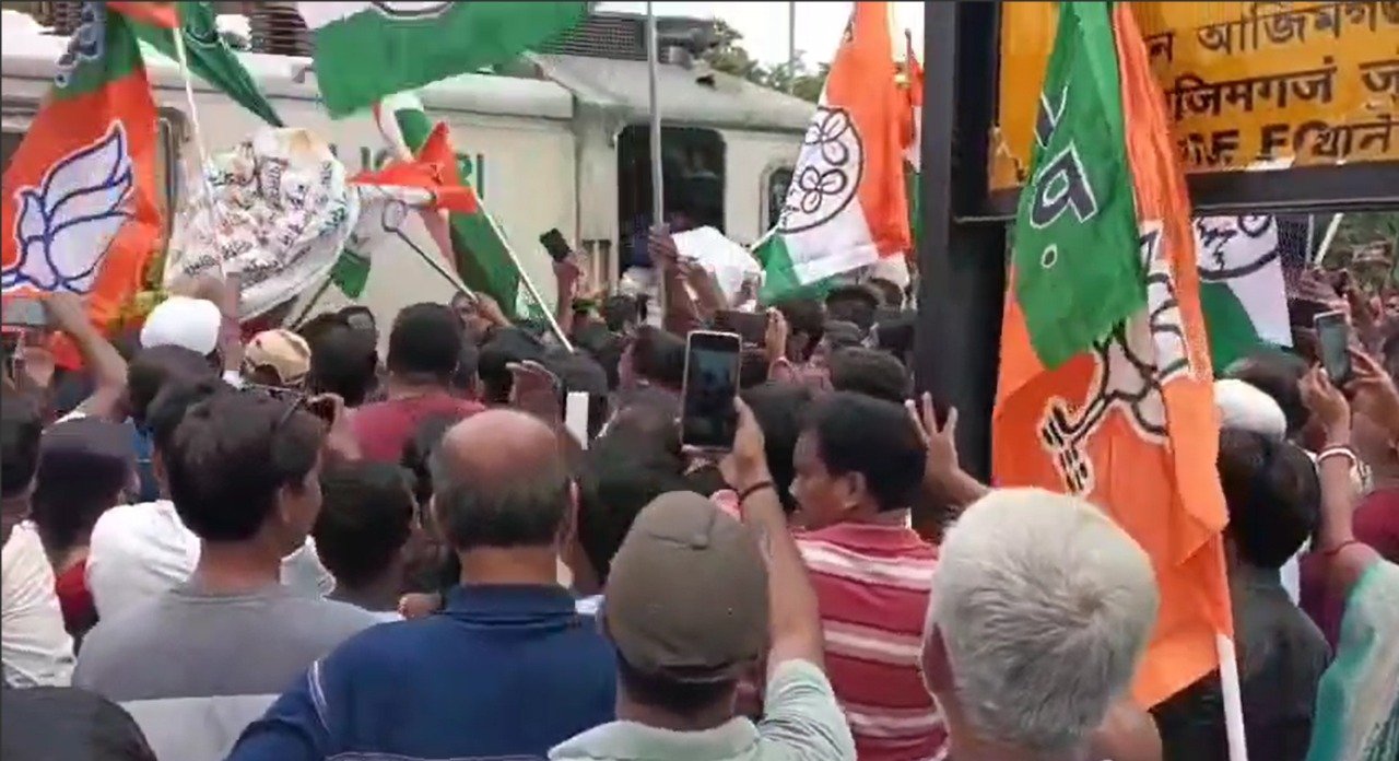 তবে স্বাগত জানানোকে কেন্দ্র করেই ট্রেন ঢোকার মুহূর্তে দুই দলের কর্মীদের মধ্যে তর্কাতর্কি শুরু হয়। মুহূর্তেই তা রূপ নেয় তুমুল শ্লোগান ও পাল্টা শ্লোগান । শোনা যায় ‘জয় শ্রীরাম’ ও ‘জয় বাংলা’ শ্লোগান। উপস্থিত ছিলেন তৃণমূলের সাংসদ আবু তাহের খান, মুর্শিদাবাদ পৌরসভার চেয়ারম্যান ইন্দ্রজিৎ ধর। অন্য দিকে বিজেপির বিধায়ক গৌরীশঙ্কর ঘোষ ও জেলা সভাপতি সৌমেন মণ্ডল।