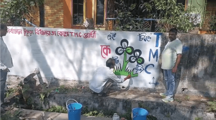 চুঁচুড়ায় প্রার্থী ঘোষণার আগেই দেওয়াল লিখনে জোর তৃণমূল, পাল্টা কটাক্ষ বিজেপির